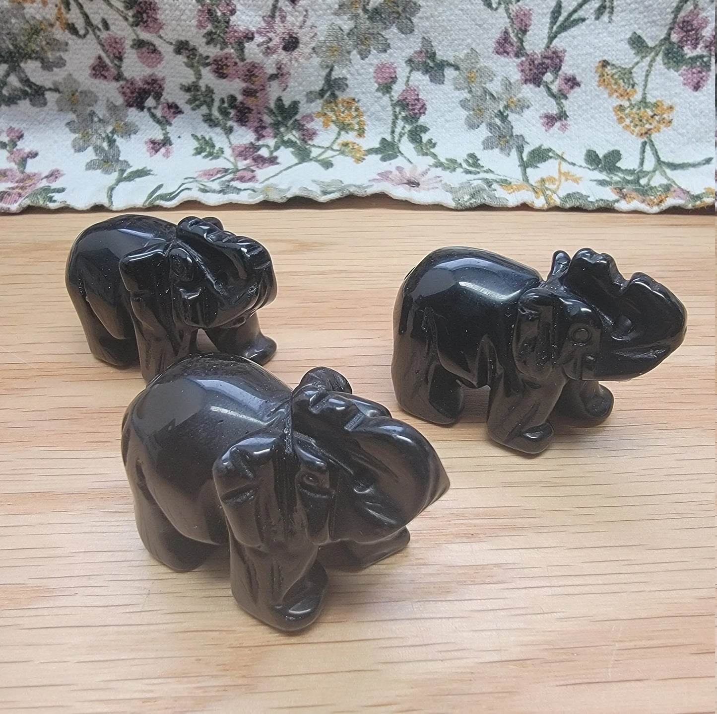 Black Obsidian Carved Elephant (Approx. 2") 0971 Elephants represent manifestation itself. They teach us that through our commitment we can accomplish all things. These beautiful animals signify strength, wisdom, stability, confidence, patience, compassion, wealth, and evolution. Elephants remove all obstacles that try to prevent you from manifesting your dreams. Because of this, it’s often called the stone of truth. Many use this black stone to reveal mysteries about themselves while also unlocking information about the inner workings of the universe as a whole. See more at stonepathtrading.com