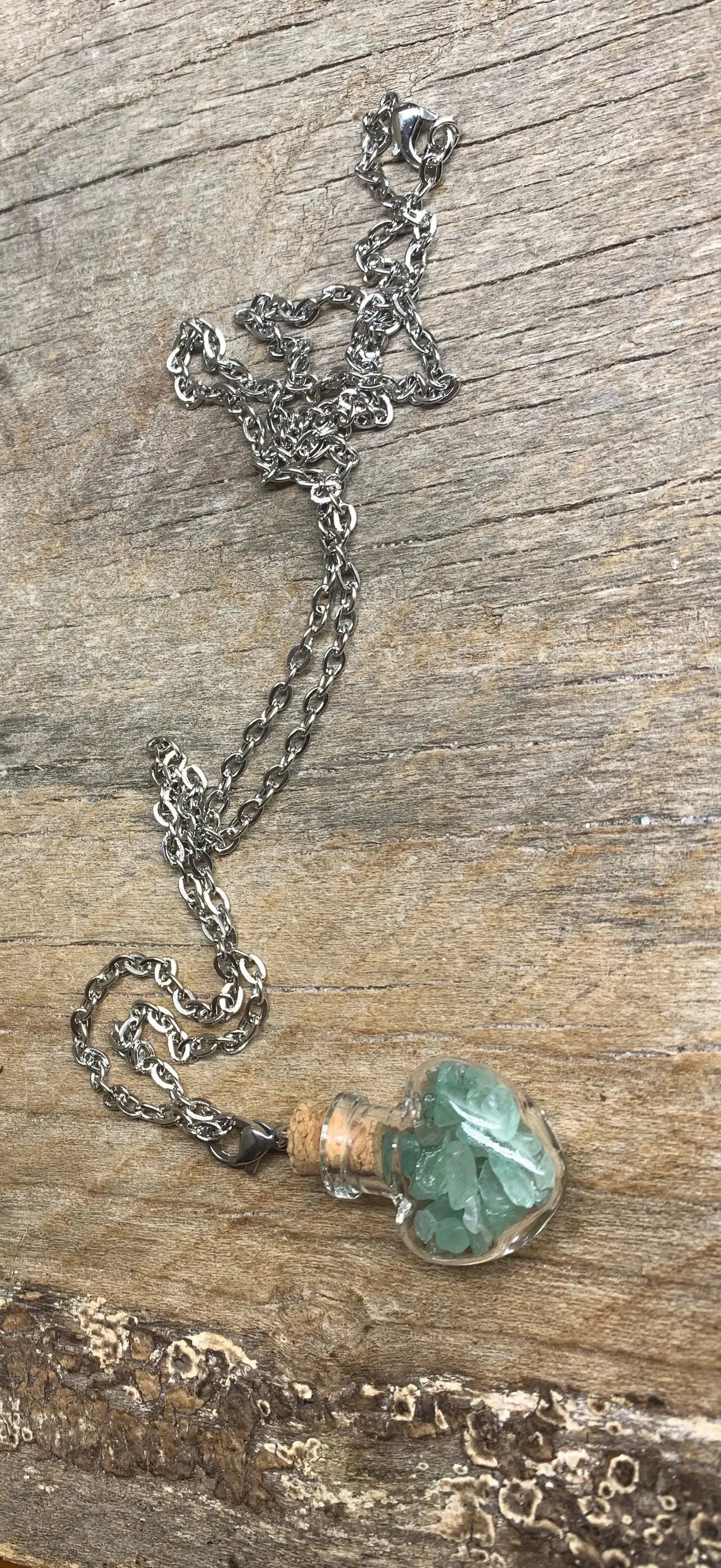 Green Aventurine Necklace in Corked Bottle, 24" Chain 1171