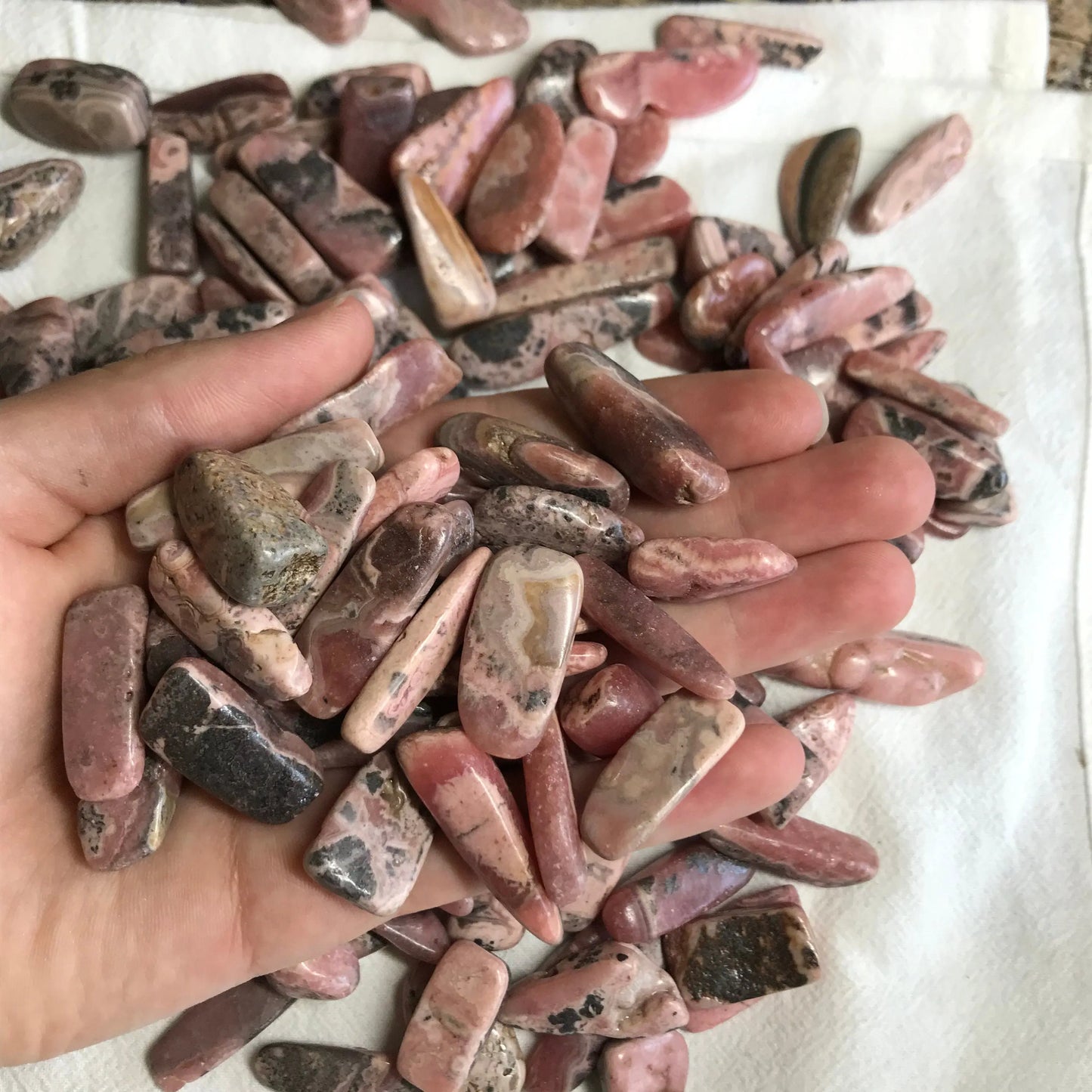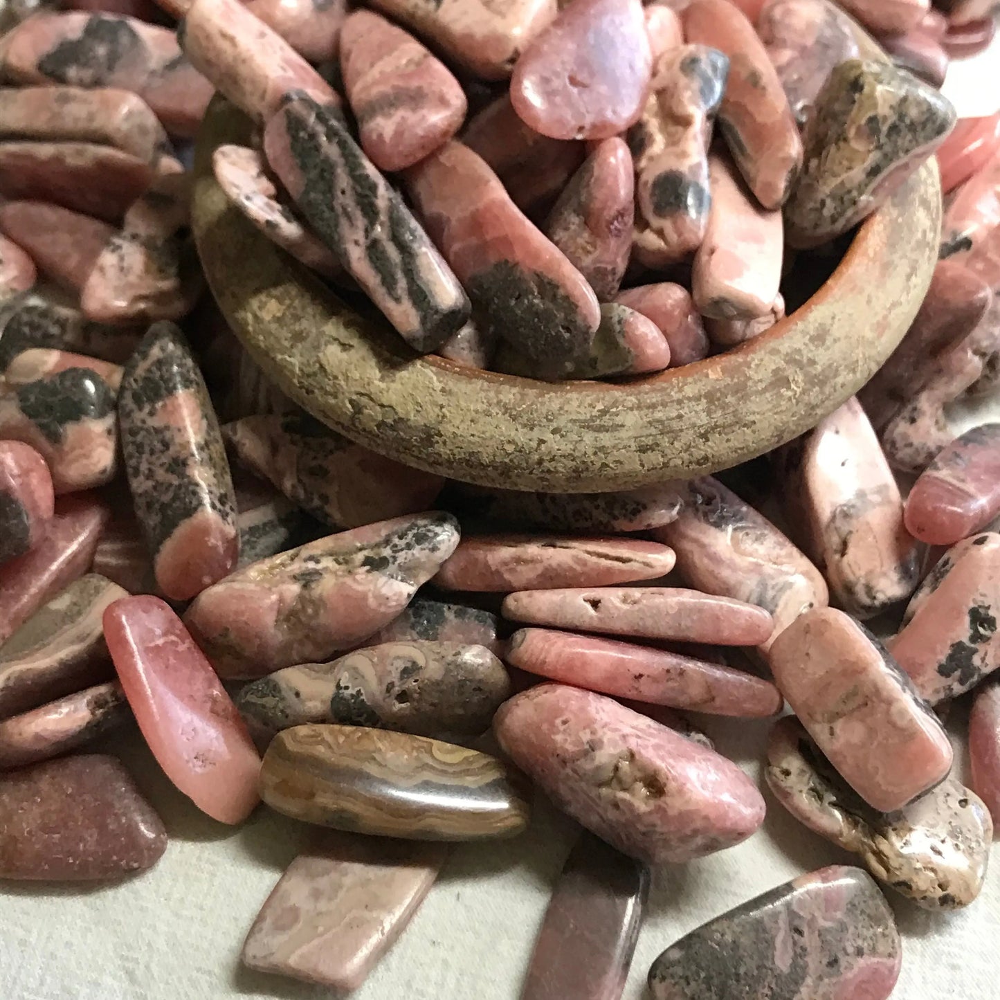 Rhodochrosite, Polished Tumbled Stone (Approx 3/4" -1 1/8" long) Polished Pink Stone, for Wire Wrapping or Crystal Grid Supply 0603