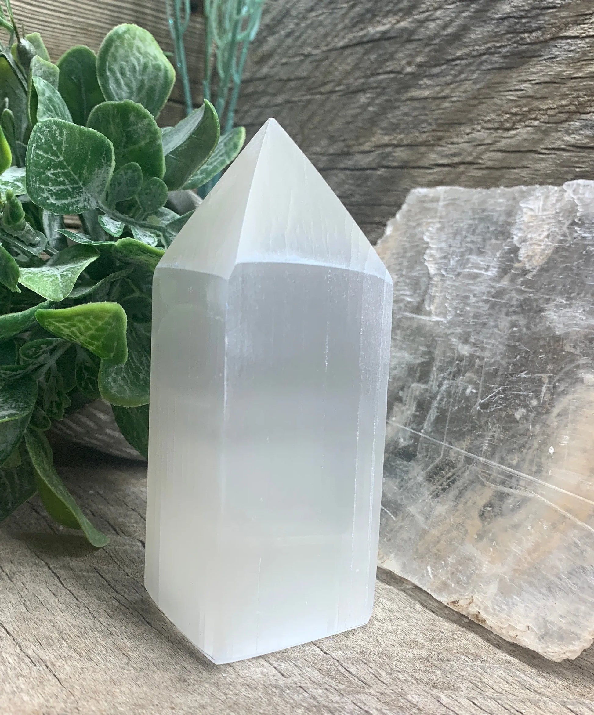 Selenite Obelisk 4” S-0063